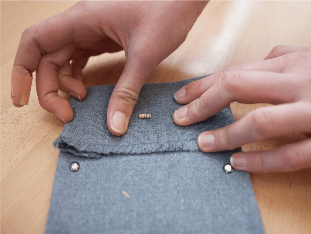 Resistor Case is a Do-It-Yourself fabric pouch for your cell phone. It was designed to help people resist the temptation of using their devices when attention needs to be focused elsewhere. Resistor Case comes as a kit, complete with recycled fabric, high-power Velcro, rivets, a resistor (for decorative use only), and a set of cards to promote reflection about responsible technology.